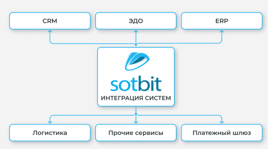 Программные продукты разработчика Сотбит интегрируются с внешними системами, такими как CRM, ERP, а также логистическими и платежными сервисами, что позволяет строить единую экосистему для электронной коммерции. Это обеспечивает клиентам гибкость и возможность расширять свои решения по мере роста бизнеса.